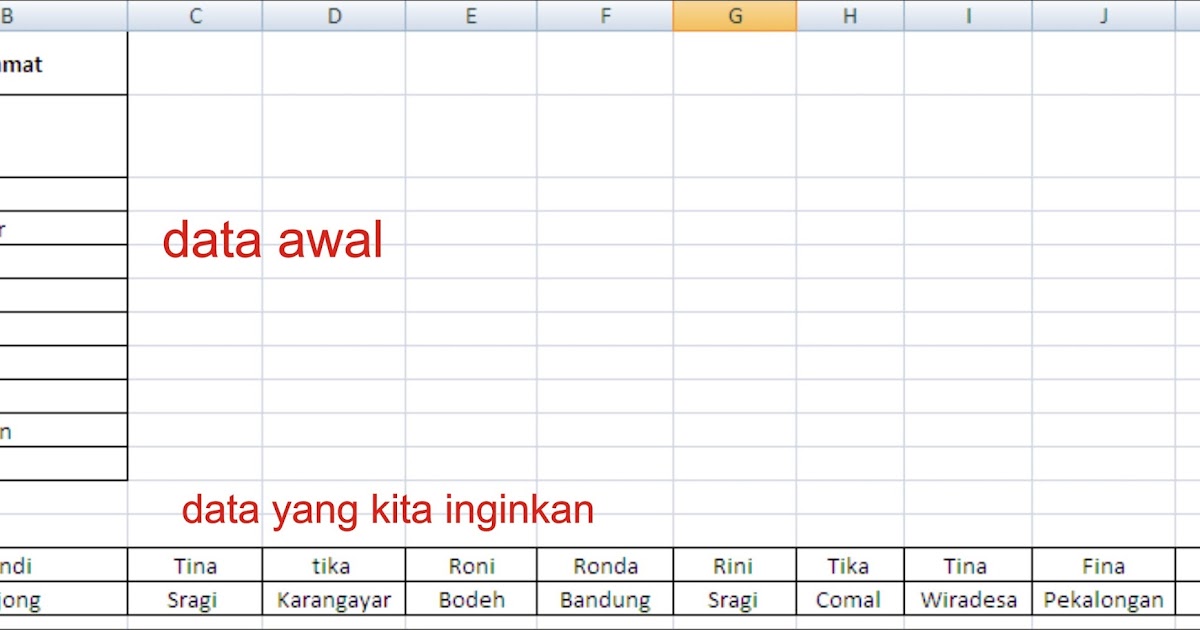 Merubah data kolom ke baris atau data vertikal ke horizontal Belajar